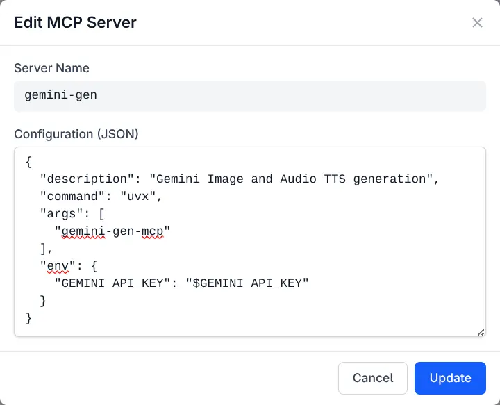 "args": ["gemini-gen-mcp"],