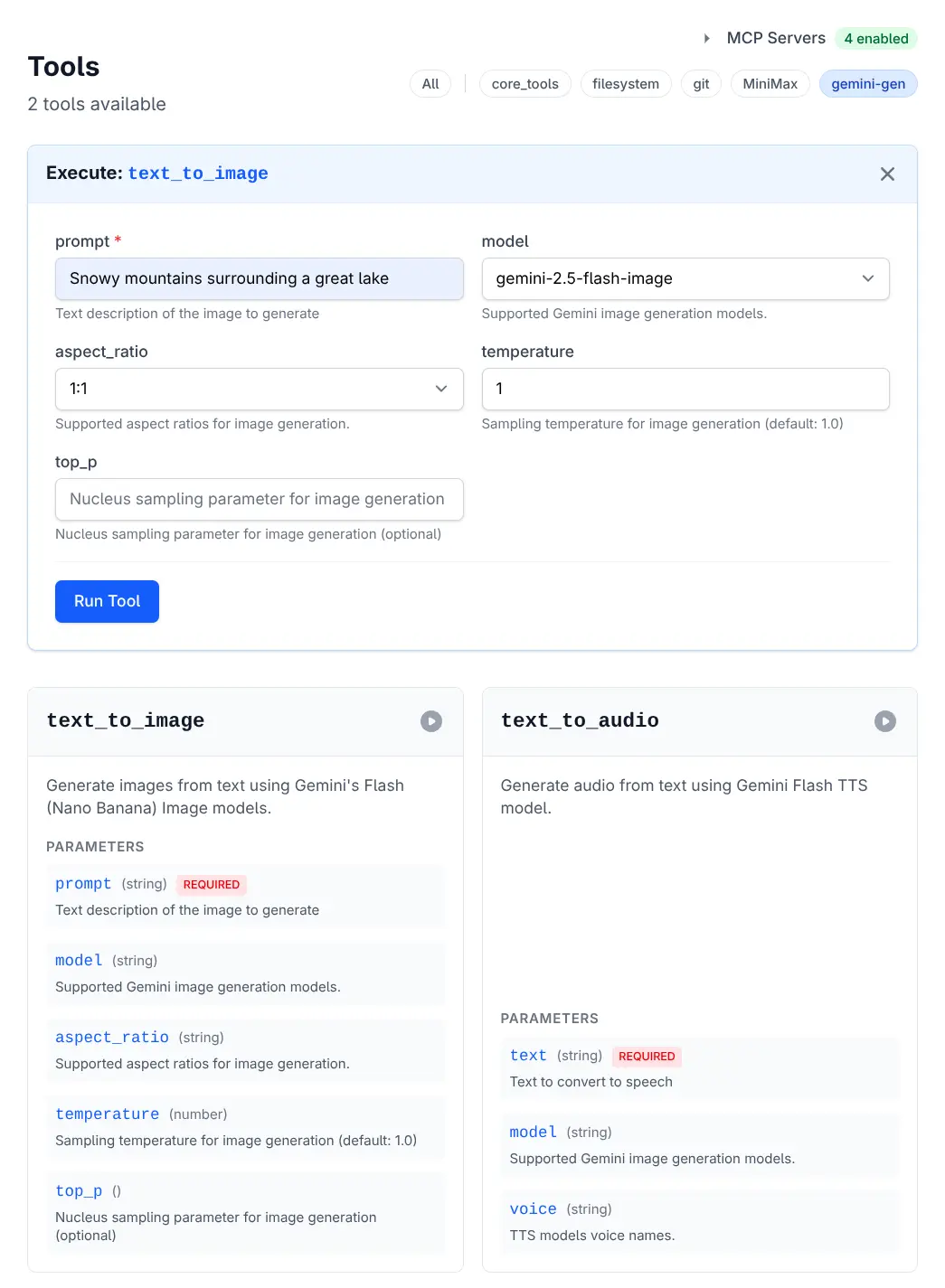 "description": "Gemini Image and Audio TTS generation",