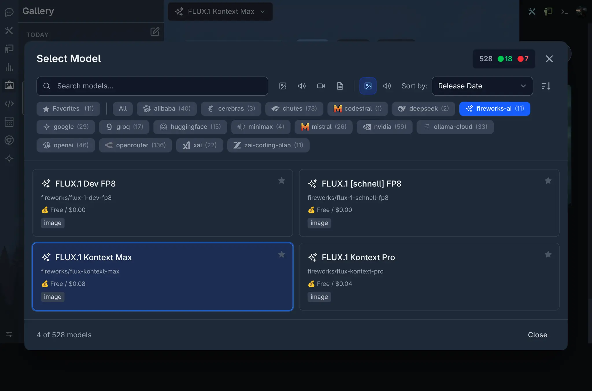 Fireworks also hosts Black Forest Labs' FLUX.1 image generation models with fast inference and competitive per-image pricing: